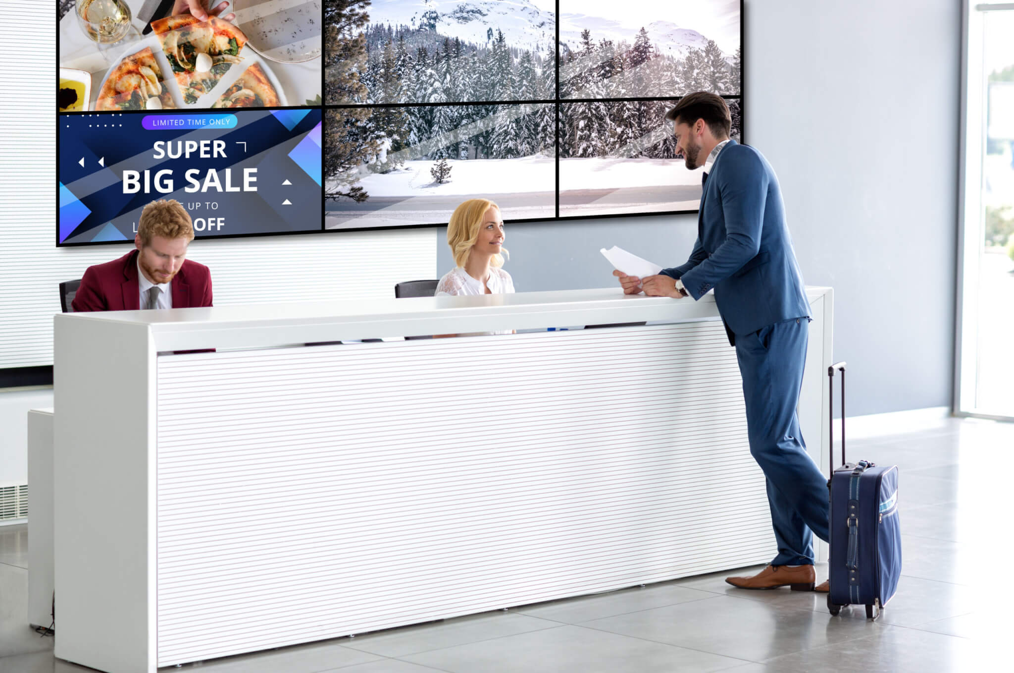 未命名-2-07未命名-22-08未命名-22-09未命名-22-10未命名-2-06 S-550M35055吋拼接電視牆專用顯示器 高畫質極致窄邊框,輕鬆打造令人印象深刻的拼接電視牆 3.5mm極窄邊框設計,打造極近無縫的視覺體驗。 支援最高解析度1920x1080、16.7百萬色、色域72%、500nits的高亮度,呈現清晰生動與高色彩效果的畫面。 RS-232菊鍊串聯各個螢幕。 支援紅外線訊號傳遞。 特點功能 規格 資源下載 特點功能 採 3.5mm 極窄邊框設計,打造極近無縫的視覺體驗,達到最佳的影音訊息傳播目的。支援最高解析度1920×1080,色彩16.7 百萬色、色域72%、500nits 的高亮度,呈現清晰生動與高色彩效果的畫面。透過 RS-232 菊鍊串聯各個螢幕,實現大畫面電視牆或異形拼接牆的建置,可靈活運用於各種使用場域。支援紅外線訊號傳遞,只需要一只遙控器,即可將控制訊號同時傳送到多台顯示器。搭配卡訊簡單直覺的 AVoIP 系統,可進行電視牆遠端管控,包括顯示器開關、IP 位置設定、畫面配置 / 分割、矩陣切換等,免去額外的軟體編輯器成本。可廣泛應用於商務會議、飯店、娛樂廣電、交通運輸、指揮中心等影音訊息傳遞用途。 規格 硬體規格螢幕尺寸合併邊框寬度色彩解析度 (像素)可視角度亮度色域背光反應時間對比度控制介面訊號連接55吋3.5mm16.7百萬色1920 x 1080178°(H) / 178°(V)500cd/m272%LED8ms1200:1RS232 輸入/輸出 (RJ45);DEBUG ISR/IR (RJ45)VGA/DVI/HDMI/AV 物理資訊尺寸 (長x寬x深)重量操作溫度操作溼度1213.7 x 684.5 x 100mm30kg0~50°C20%~80% (無凝結) 電源電壓待機耗電量AC 100~240V,50-60Hz220W/145W/1W 資源下載 規格型錄 拼接電視牆情境應用 商務辦公會議 l 簡報一目瞭然,同步講者聽眾的互動畫面 飯店與商辦大廳 l 多媒體訊息清晰呈現,增大促銷宣傳力道 交通運輸 l 乘車時刻/班次即時同步,乘客掌握最新乘車資訊 戰情中心與指揮站 l 同時顯示各區災情資料,強化救災效率 聯絡專員