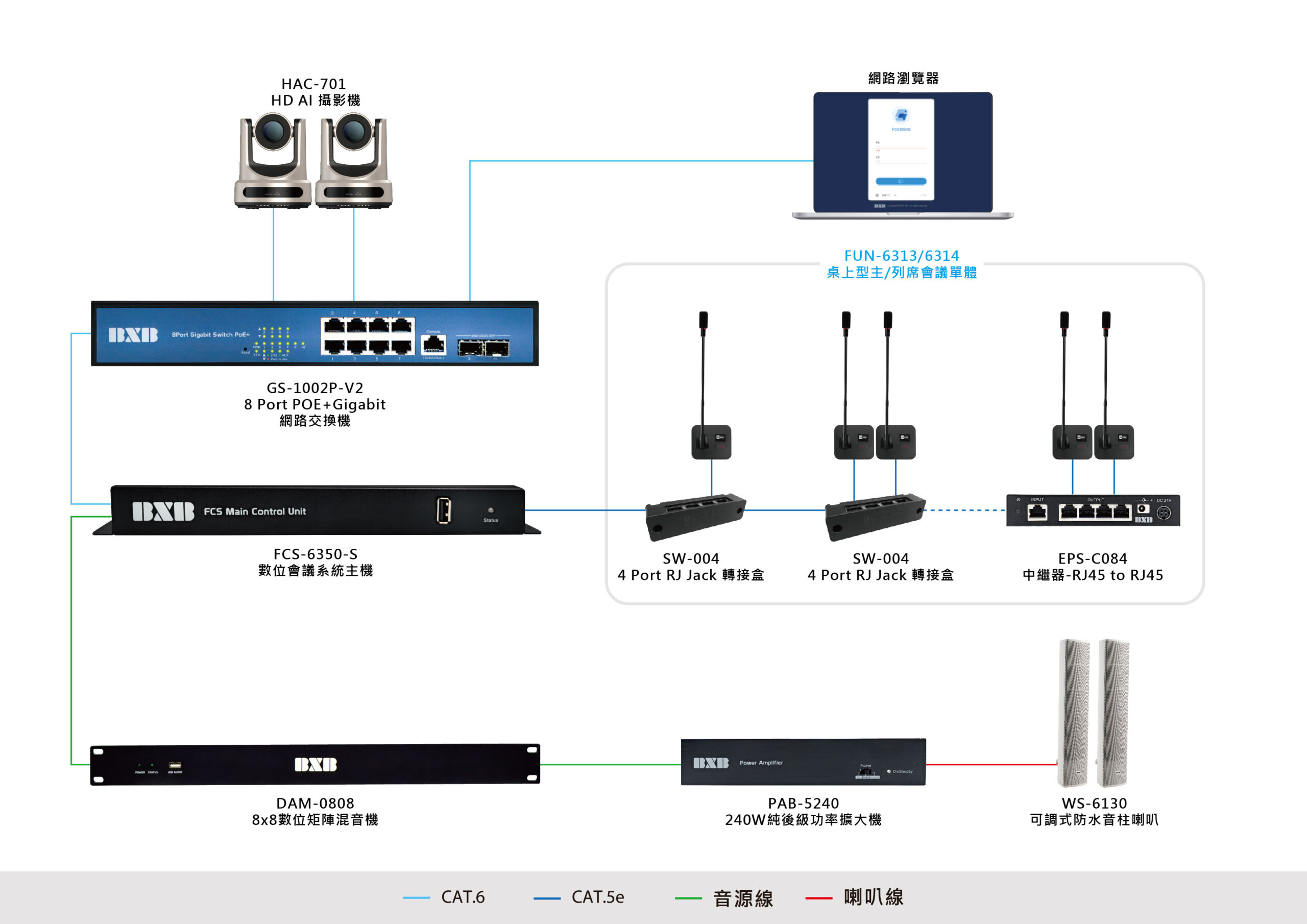 - 維護便捷:採用全球通用的 Cat-5e 網路傳輸線,傳送聲音及數位的控制訊號,日後維護線材取得容易。