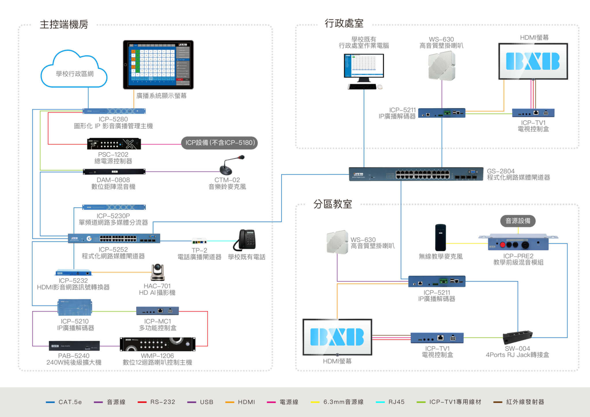 BXB ICP-5200 IP影音分佈式多媒體發布系統應運而生,滿足這一需求。系統整合物聯網、大數據、影音串流和雲端技術,支持高畫質視訊和清晰音頻串流,具有低延遲和同步播放特性。無論在智慧校園、百貨公司、工廠、機場、車站、飯店、社區還是緊急應變指揮中心,ICP-5200提供即時、可靠和高效的廣播解決方案。