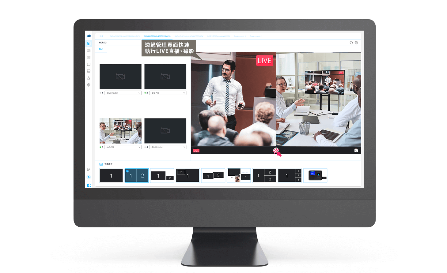 可連接串流媒體處理器,透過管理頁面快速執行直播、錄影儲存、導播版型切換,