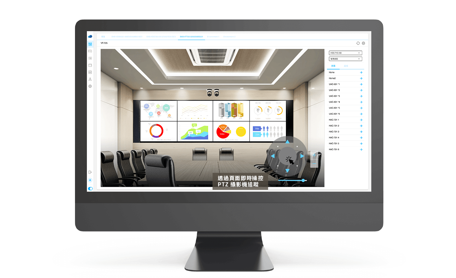 完善的環控系統應該包含機電整合、監控狀態等基本控制項目,並提供完善的圖控介面,管理者可以對各個子系統進行集中管理和操作,即時監控各項設備的運作狀態,無需切換不同的操控平台,操作更加便捷、高效。從投影畫面呈現、追蹤攝影機、直播串流、喇叭輸出、照明到到冷氣,無一不在其掌控之中。