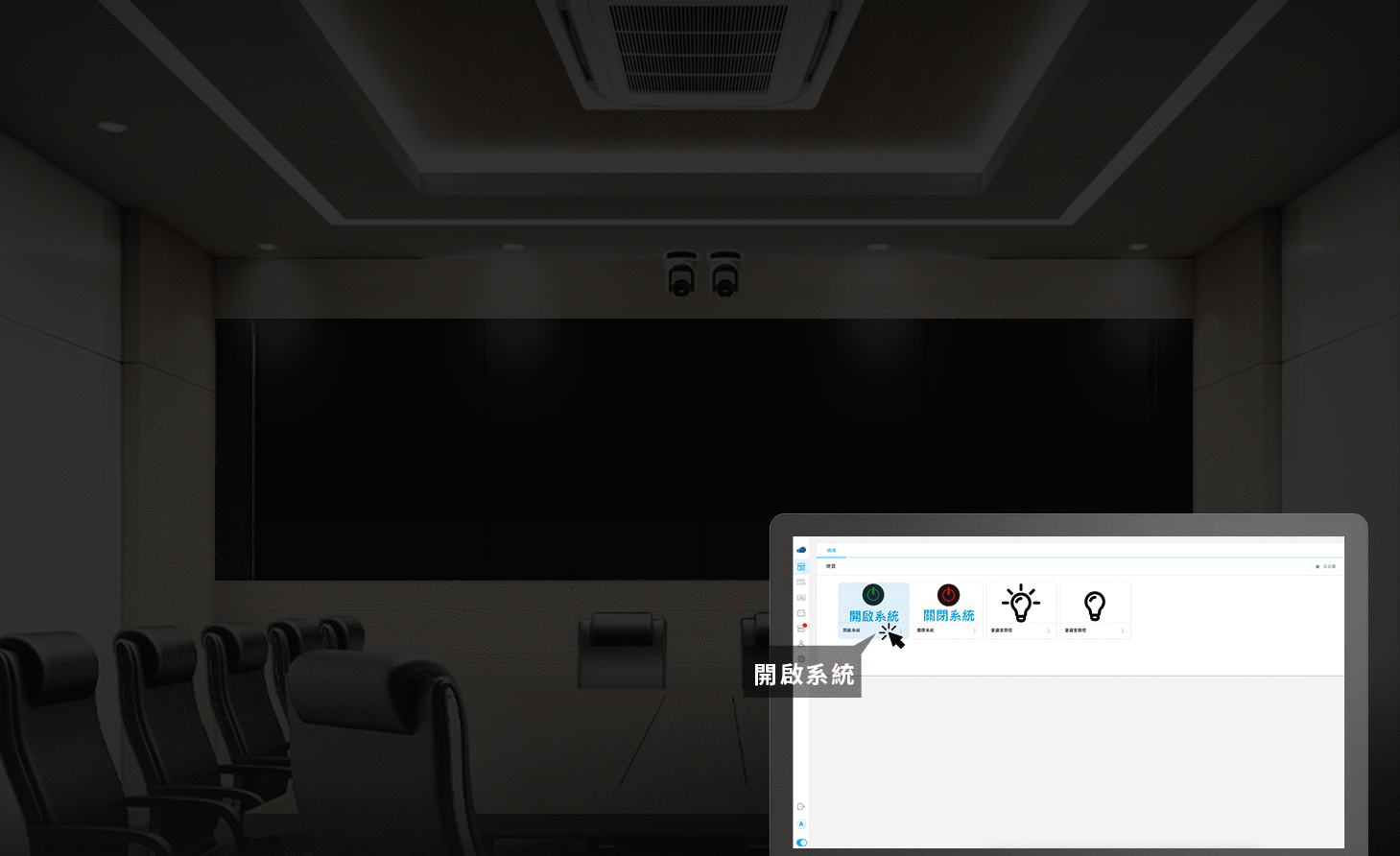 智慧環控就解決了這樣的問題!與客戶開會時,我或是同事不需要再為了開關燈、調整攝影機位置中途離席,可以很放心地進行會議,因為我知道平板可以就可以控制所有設備!我不會因為以往的會議室環境設備問題中斷會議、甚至冷落客戶!